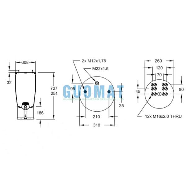 Truck Air Springs are a suspension system component for heavy-duty vehicles. Brand Name: GUOMAT; Model Number: 881MB; Place of Origin: CHINA; Mounting Type: Bolt; Material: Rubber+Steel+Aluminum; Size: Customized; Color: Black.