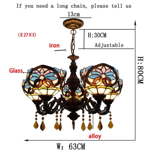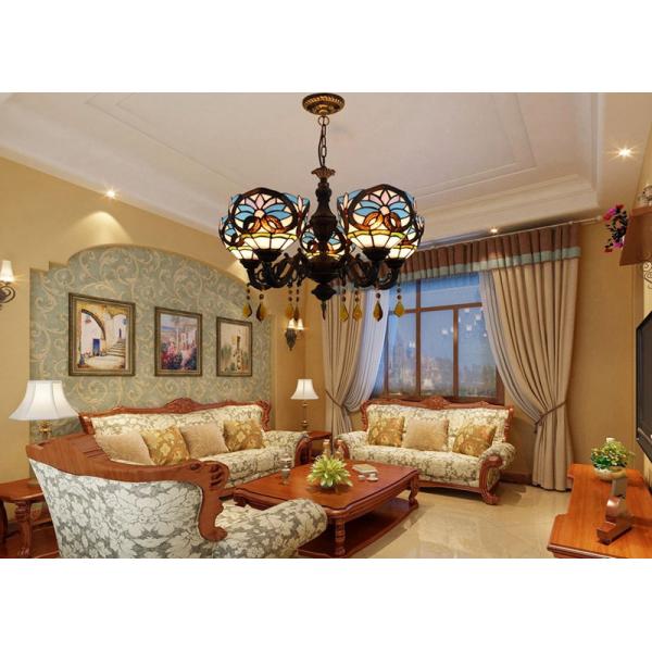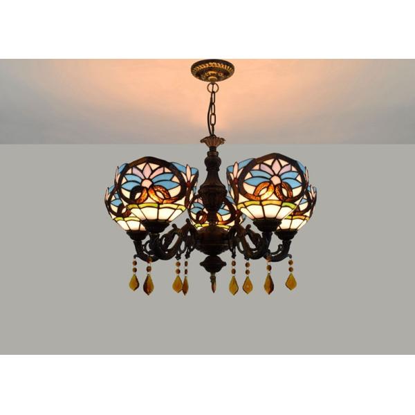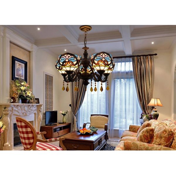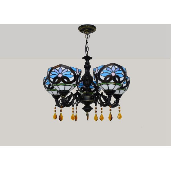 Vintage Stained Glass Love Heart Baroque Bar Cafe Restaurant 5 Heads Glass Chandeliers