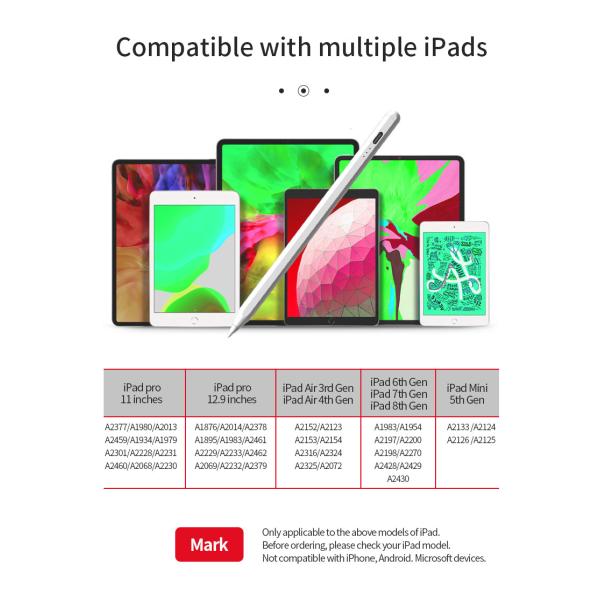 The Active Stylus Pencil is the perfect tool for your iPad, iPad Mini, and iPad Pro. Made of durable Aluminum Alloy and weighing only 15g, this stylus pen is extremely lightweight and portable. Compatible with all generations of iPad, this stylus pen is the perfect tool for taking notes, drawing, and writing. The iPad Pencil 2nd Generation is also equipped with magnetic wireless charging, providing up to 15 hours of working time. With its high-precision and sensitive tip, the Active Stylus Pencil is the perfect stylus pen for iPad users.