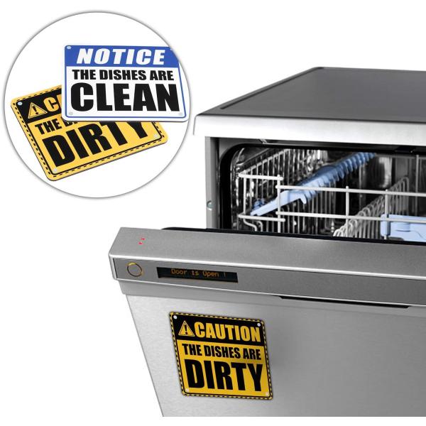 dishwasher magnet cleaning dirt comes with an extra sticky metal plate, which can be glued to any non-magnetic dishwasher. This plate is optional for non-magnetic surfaces. The dirty magnet sign for dishwasher cleaning also applies to washing machines or dryers in laundry rooms.