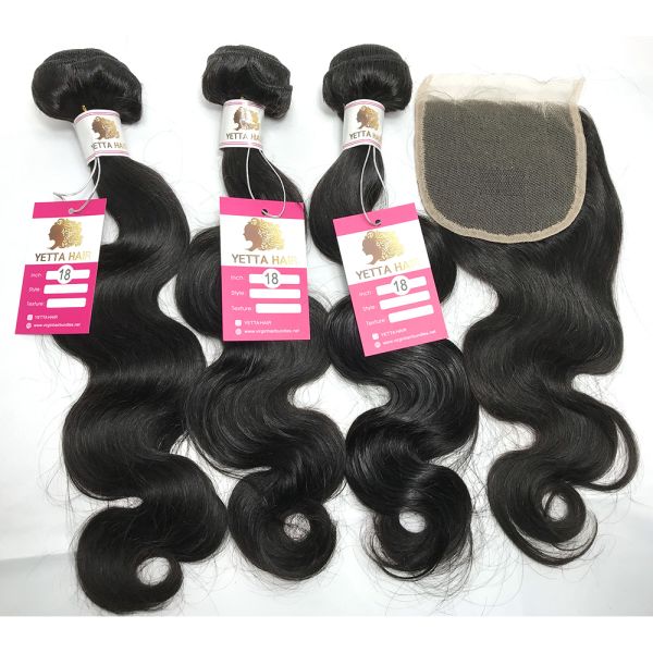100% Brazilian Virgin Hair Brazilian Hair Boby Wave 4x4 Closure With 3 Bundles