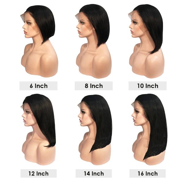 Short Black Human Hair Lace Front Bob Wigs Straight 10 iches - 18 Inches