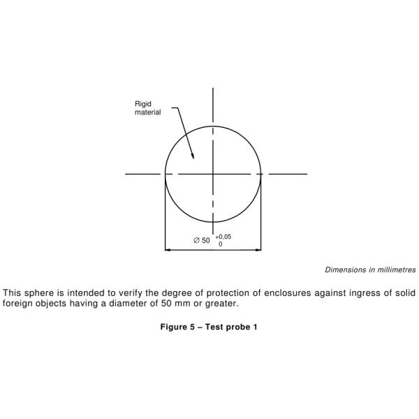 This sphere is intended to verify the degree of protection of enclosures against ingress of solid foreign objects having a diameter of 50 mm or greater.