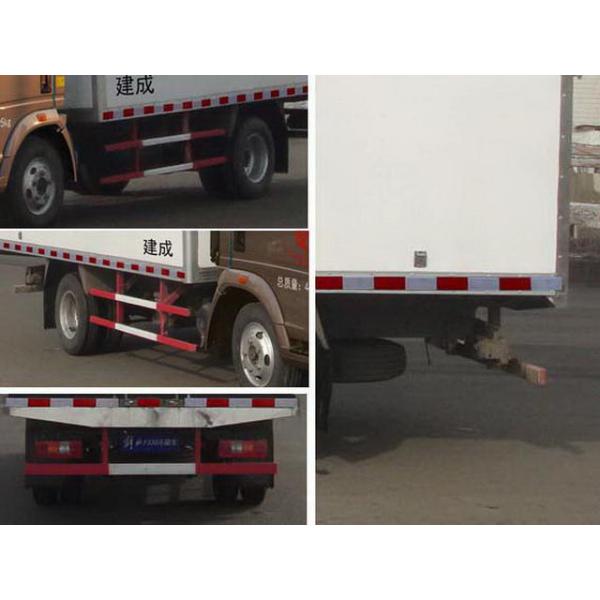 | Others: | The top of the car is closed, cannot be opened,with optional side door, and other types of refrigeration units.the side and after bottom protective device made of Q235A, the connection methods are bolted connection, the sectional dimensions of the after bottom protective device is (width x height) :50mmx100mm,.the height of the lower edge is 450mm from the ground .Fuel consumption to declare a value of the Engine CA4DC2-10E4 ,CY4102-CE4F,YN33CRD2,CY4102-CE4D and YN38CRD2are 12.0,11.8,11.9,12.1 and 12.2,respectively. | ||