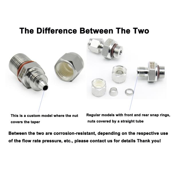 Ferrule Design: Male ferrule fittings have a ferrule, which is a small ring-shaped component that is placed over the tube or pipe to provide an extra layer of support and sealing.