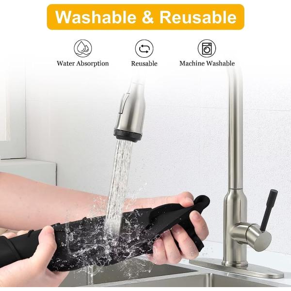 【Organize Your Sink】 Our faucet mat not only catches drips but also serves as a rest area for brushes, sponges, and detergents, keeping your sink counter tidy and organized.