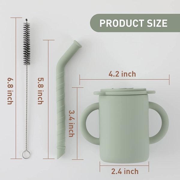 【NON-SLIP】 Simple, elegant and quipped with handles and a soft silicone straw, our training cup is the perfect way for little ones to learn how to drink like a big kid! When they are ready to drink from an open cup, simply remove the lid and straw