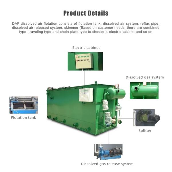Air flotation machine is dissolved gas system in the water to produce a large number of tiny bubbles, so that the air is highly dispersed in the form of tiny bubbles attached to suspended particles, resulting in density less than the state of water, the use of buoyancy principle to make it floating in the water, so as to achieve solid-liquid separation of water treatment equipment.