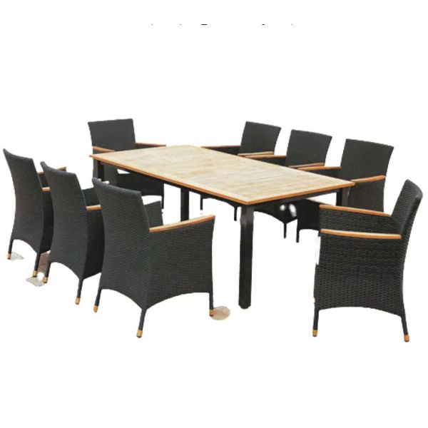 Product Name:7pcs outdoor Rattan furniture pool side furniture rectangle wooden garden tables with 6 plastic dining chairs---8300 Application:Garden, backyard and patio |