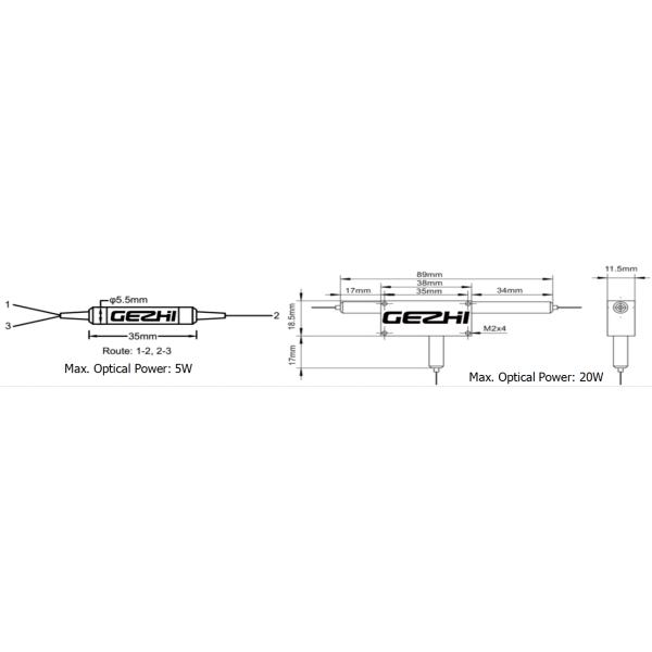 | Package Dimensions | Input Power ≤5W | mm | φ5.5x35 | |
