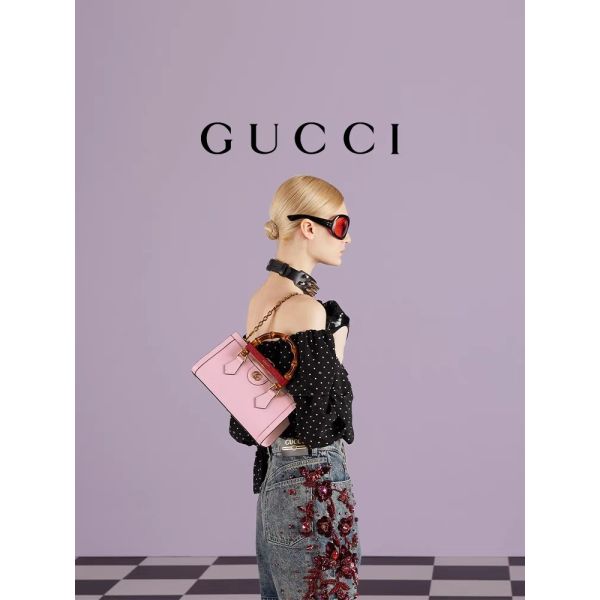 As the latest model of the "Gucci Cosmogonie" (Gucci Cosmogonie) series, the Gucci Diana series continues to integrate iconic brand elements with bamboo handles and double G styling accessories. The pink leather material complements the two leather decorative straps, highlighting the smart and elegant temperament.