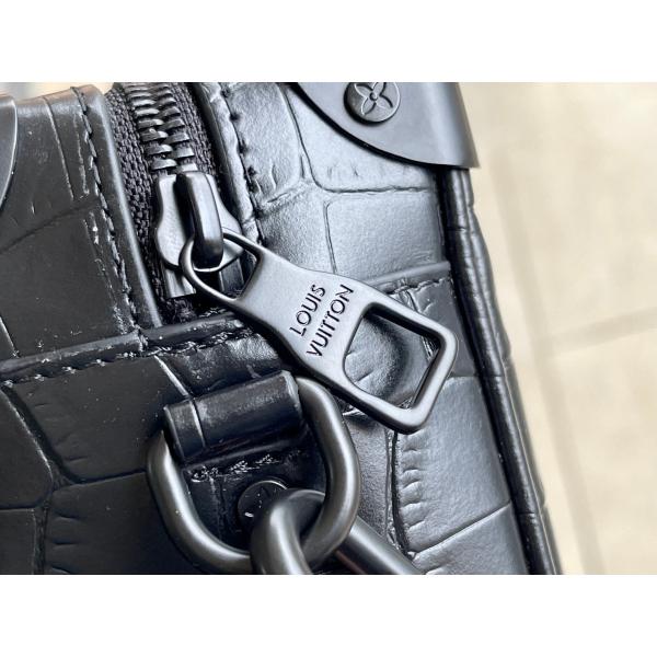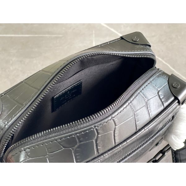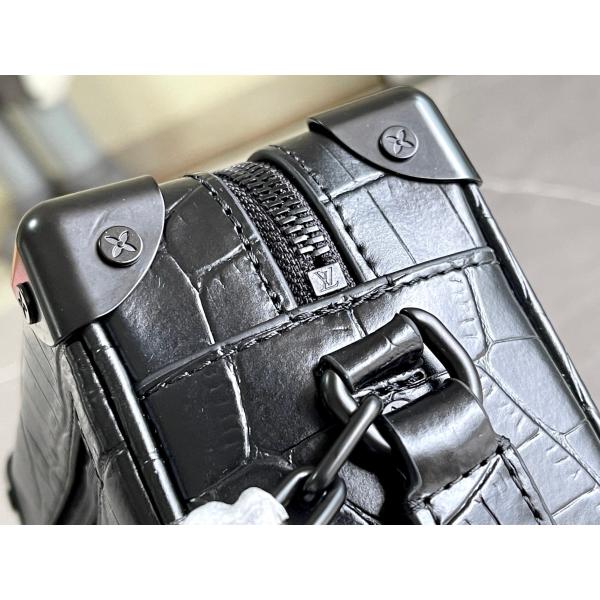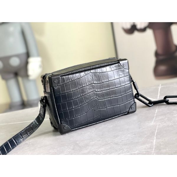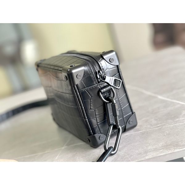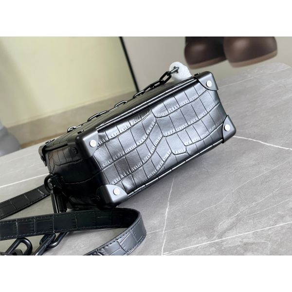 In rare and precious crocodilian skin, this Mini Soft Trunk is a testament to exceptional leather craftsmanship. It takes its style cues, such as its riveted corners and boxy shape, from classic luggage found in the Louis Vuitton archives. The two chains, one connected to the zip and the other serving as part of the shoulder strap, bring modernity to this small bag.
