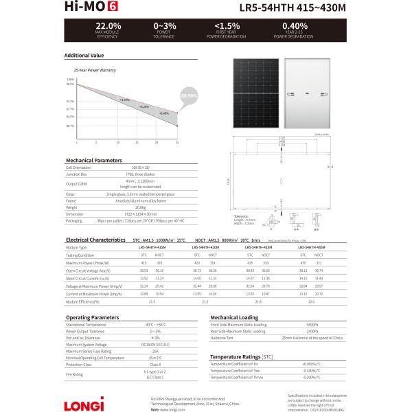 | Model Number: | LR5-54HTH(415-430W) |