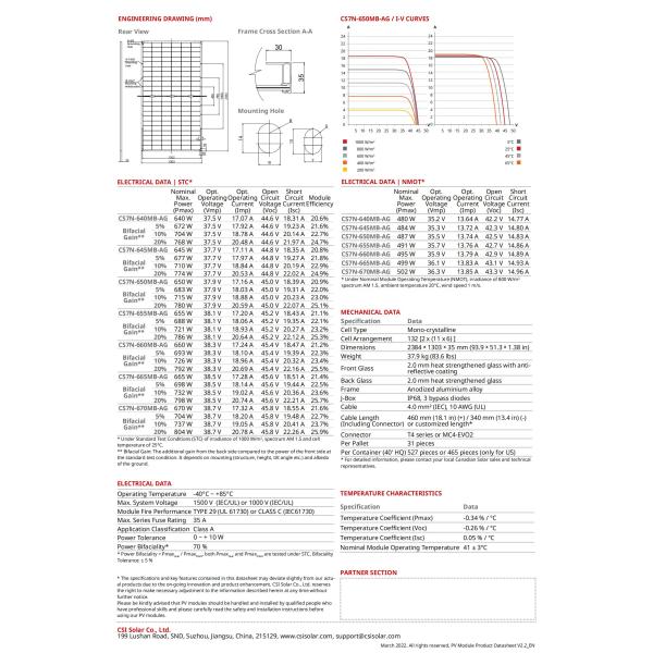 | Maximum Power (Pmax) | 640 Wp | 645 Wp | 650 Wp | 655 Wp | 660 Wp | 665 Wp | 670 Wp |