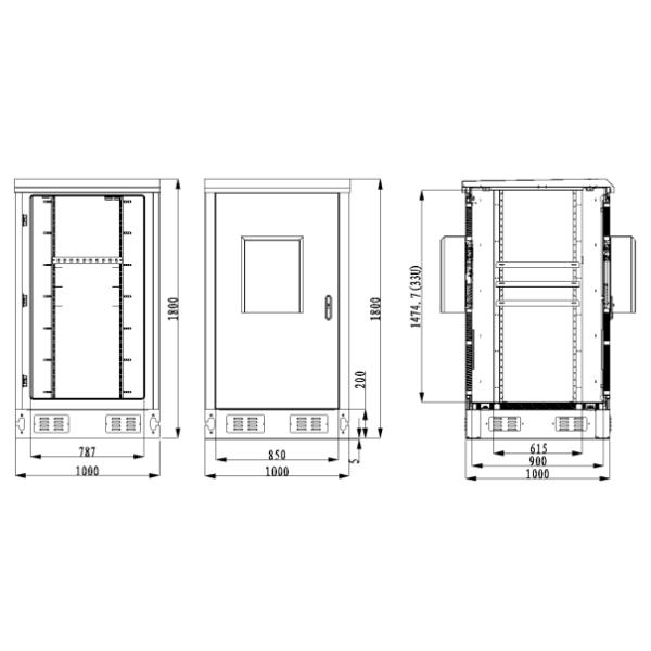 | 1 | Outdoor Telecom Cabinet | 1 | Set | (1) External Dimension H×W×D 1800×1000×1000mm (2) One compartment; (3) With one front door and one back door, totally two doors; with anti-theft three point lock for outdoor cabinet (support padlock) (4) Material: galvanized steel; with heat insulation |