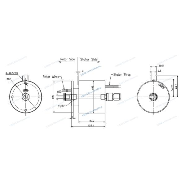 QCN0103-10P2 is CENO’s new integrated slip ring which is combined 10 circuits for 10A and 1 channel for gas apply to the industrial automation system. CENO have many kinds of integrated slip rings in the past twenty yeas. The Electrical slip ring combined pneumatic or hydraulic rotary union is one type in our product line, it’s designed for special machinery, as the mechanical engineering, Food processing, Chemical and pharmaceutical. For more information about how CENO’s slip ring can suit your specific applications please contact us.