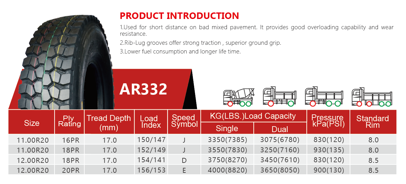 | 8.25R16 | 12.00R20 | 12R22.5 | |