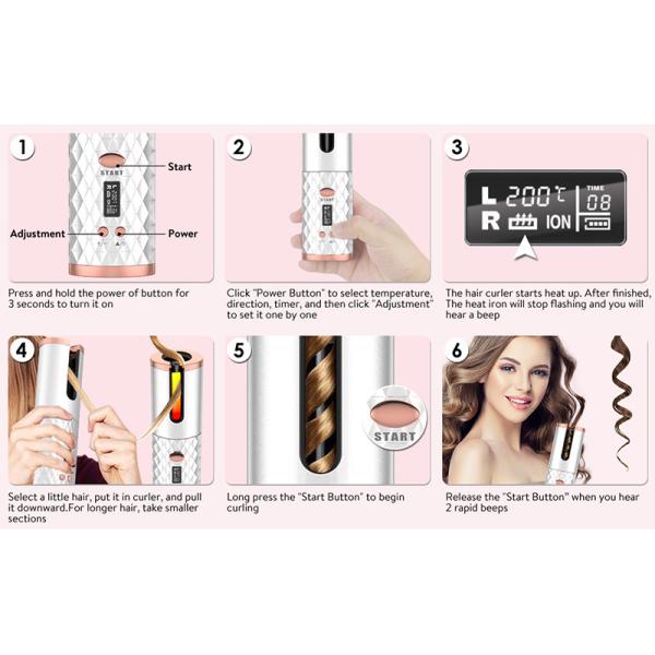 1) One-Click Automatic Curling: No skill is required, just put the right amount of hair into the curling tube, press the button and wait for a while to get beautiful curls. The product has an automatic reverse (left/right) rotation function and an anti-tangling design, which is simple and convenient, without multiple curling rollers. This is a new type of portable automatic curling iron styling tool.
