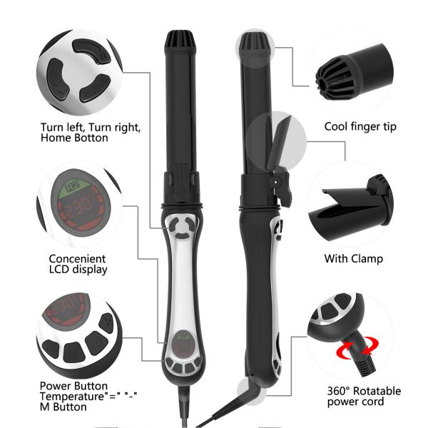 New Arrival PRO Automatic Rotating Ceramic 1.25 Inch Curling Iron Hair Curler Wand With LCD Adjustable Temperature
