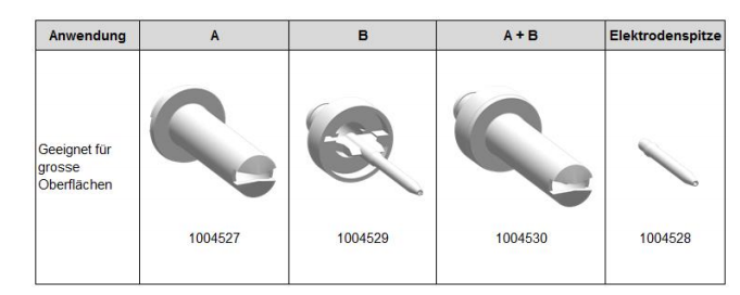 | components: | flat jet nozzle and electrode holder |