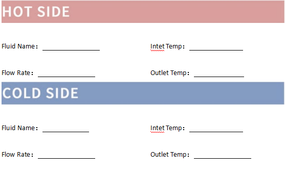 Heat exchanger selection is very important,usually need to know the above parameters,if you are not clear about the conditions of use, please contact us, we will confirm the selection parameters with you.