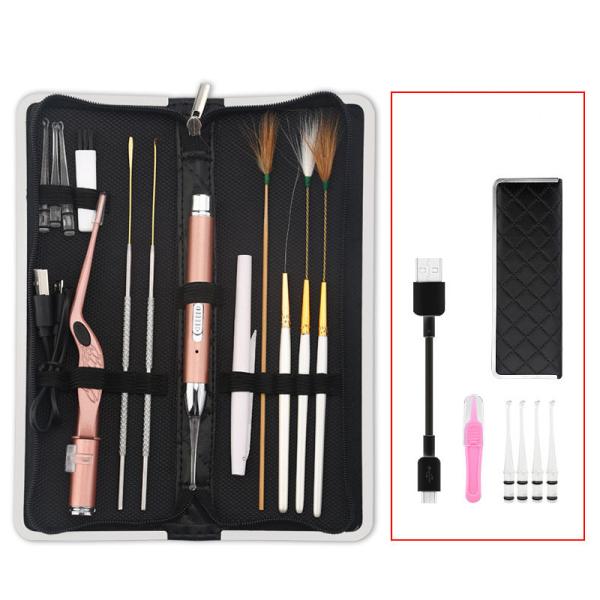 Ear cleaner included 2 types of ear spoons: one mental ear spoon with silicone cover, upgraded small serrations to prevent silicone cover falling off; one Q-Elastic ear spoon, the spiral structure makes it stable and fixed to ear wax removal too.