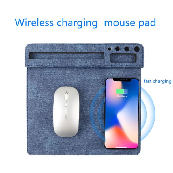 Wireless Charging Mouse Pad Leather Mouse Pad Pen Holder Gaming Mouse Pad