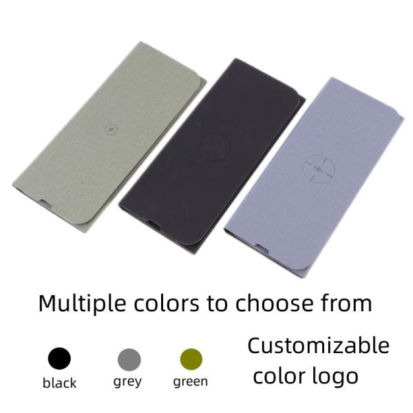 This is a foldable wireless charging mouse pad made of high-quality PU leather, waterproof and dustproof, wear-resistant, easy to clean, easy to maintain, and durable. The mouse pad comes in three colors for you to choose from, namely black, blue, and green. If you don't have the color you like, don't worry. We can help you customize the colors you need. The mouse pad can also be customized with the logo you want, making your mouse pad unique. The multifunctional design of the mouse pad makes it widely used, including a mouse pad, phone holder, and a charging device equipped with the mouse pad. As long as your phone supports wireless charging, it can perform wireless fast charging for your phone. The mouse pad can be used as business gifts, office gifts, promotional gifts, and so on. The foldable design makes the mouse pad very small in size, suitable for carrying when we go out, and can be placed directly in the pocket, making it very practical. You can give it as a small gift to your family and friends.