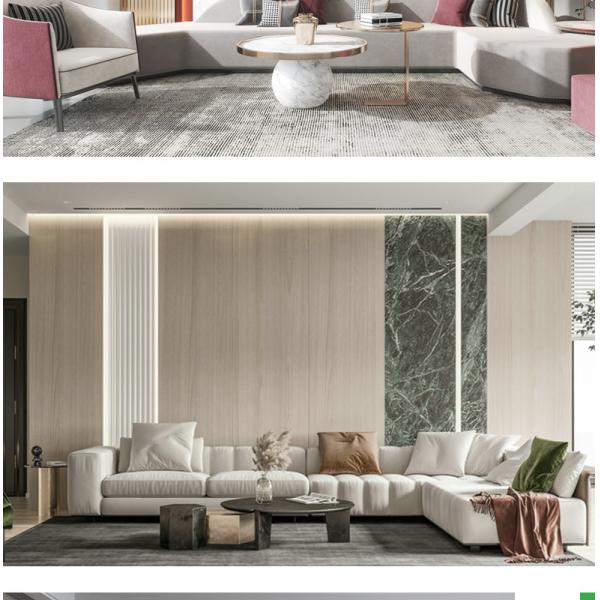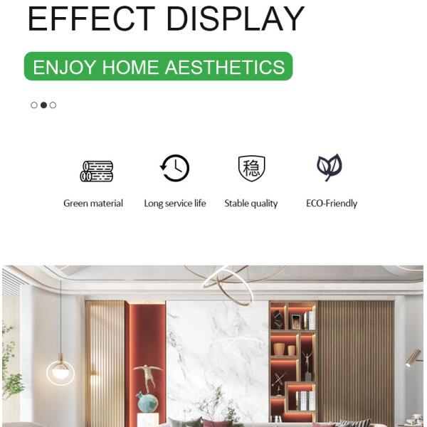 Modern light luxury waterproof wood grain PVC wood veneer wall panel combines the charm of solid wood with the practicality of PVC (polyvinyl chloride). These panels consist of a thin layer of authentic wood planks with a waterproof PVC backing for increased durability and moisture resistance. Each panel showcases intricate patterns and grains, capturing the essence of a variety of wood species including oak, walnut, cherry and maple. Whether used as an accent wall or throughout a room, the woodgrain aesthetic can add a touch of sophistication and warmth to any space. Modern light luxury waterproof wood grain PVC wood veneer wall panels are designed with sustainability in mind. The wood veneers used in these panels come from responsibly managed forests or reclaimed wood, ensuring these panels do not contribute to deforestation. By choosing responsibly sourced materials, consumers can help protect natural ecosystems and support ethical wood harvesting practices.