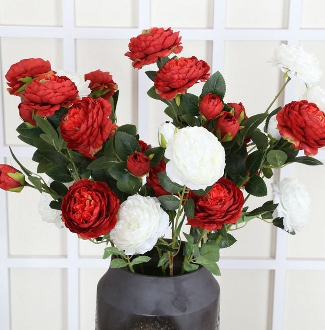 flower wrapping paper, flower ribbon, and artificial flowers.