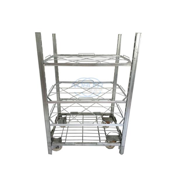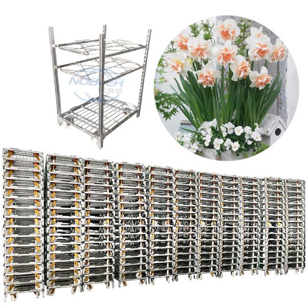 Flower revolving truck is a kind of unit mobile assembly equipment installed with four casters to transport flower products, which is widely used in flower logistics distribution. Almost all modern flower logistics are using a trolley. By transporting flowers, potted plants or fresh cut flowers are not packed in cartons or wooden boxes, but directly placed on the trolley partition plate, protecting the plant from excessive extrusion and minimizing the loading loss; on the other hand, it also makes the loading and unloading process very labor-saving, which greatly improves the efficiency of loading and unloading vehicles.