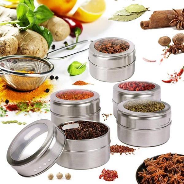 Stainless Steel Spice Jars with Rack Storage Magnet Spice Containers Magnetic Spice Tins