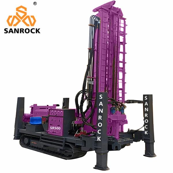SR500 Crawler water well Drilling Rig it is a high efficiency and multi-functional down the hole water well drilling equipment, It can be used to drill water well, agrecultural irrigation well, geothermal well and other type well holes. It is sepcial suitable for mountain area and rock stratum water sourcing project.