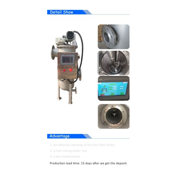 Moreover, when the pressure drop reaches the pre-set trigger point, filter basket cleaning starts automatically. When we reach the differential pressure trigger point, then the gear motor turns past the rinsing unit positioned on the inside of the filter basket.