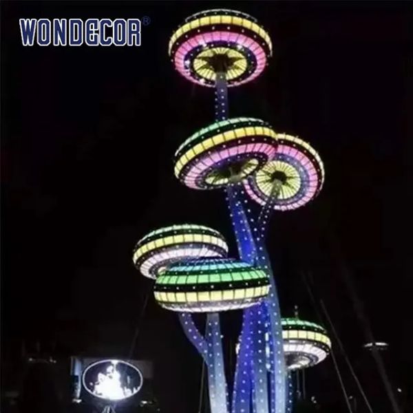 Modern Outdoor large lighting abstract plant stainless steel sculpture