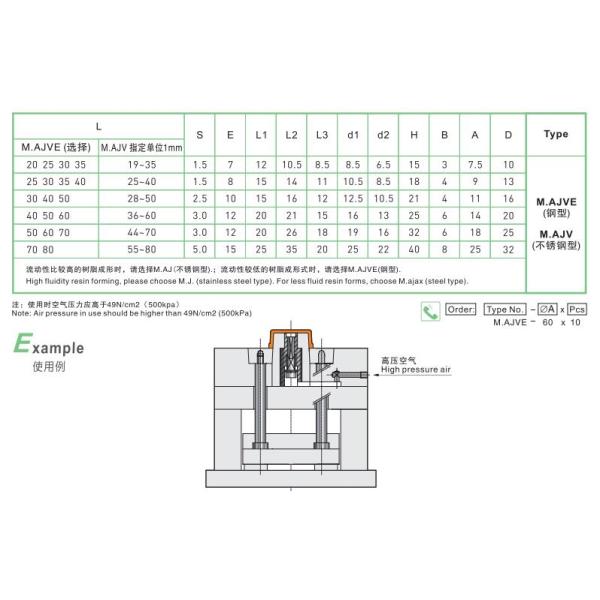 High-precision air injection needle, MISUMI standard air lift valve AJV-10 injection mold thimble