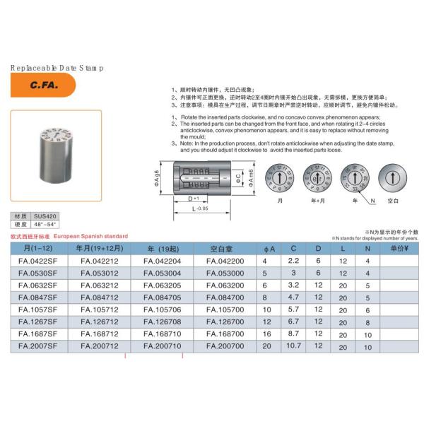 Cumsa Mould Spare Parts Changeable Date Making Pin C. FA For Plastic Mold
