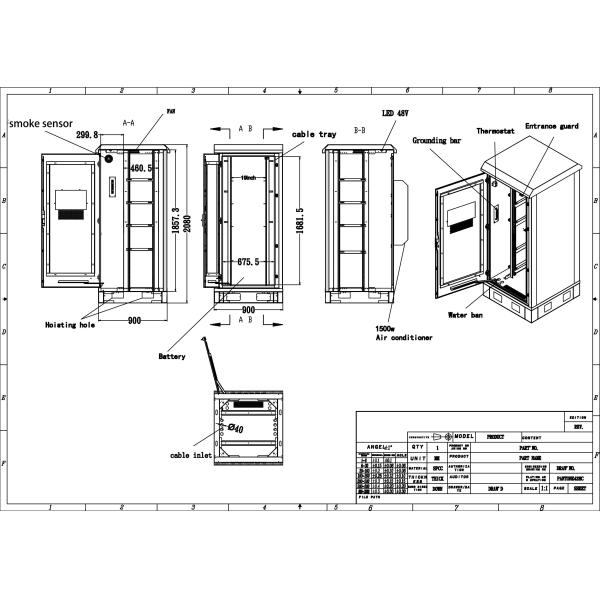 | Cabinet cooling | AC 1500W side mounting cabinet air conditioner DC 48V emergency fan |