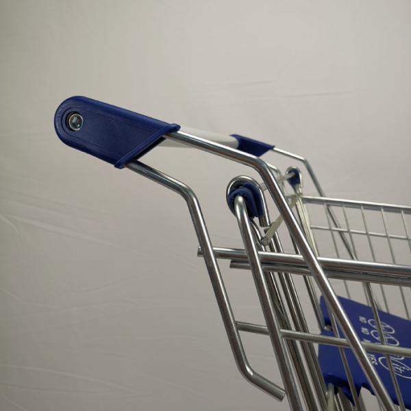 European Style 125L Supermarket Shopping Metal Trolley Anti-Theft With Blue Plastic PU Wheels