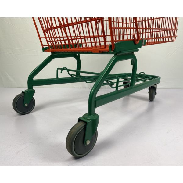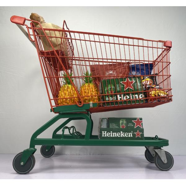 210L German Type Warehouse Supermarket Shopping Trolley Metal Red and Green Large Capacity Cart with 5-inch PU wheels