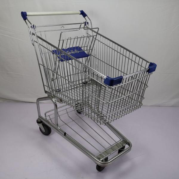 Grocery Store Steel Trolley German Type Supermarket Rolling Cart With Blue Plastic Parts High Quality