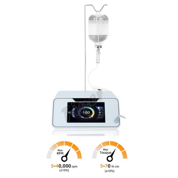 | Packing list | Control unit/ Motor with cable/Power cord/ Foot switch/ Disposable gum rinser/Motor bracket/Water bottle bracket/20:1 fiber handpiece |