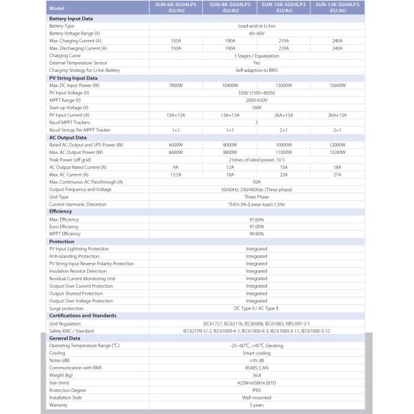 Model Number | SUN- 12 K-SG04LP3-EU |