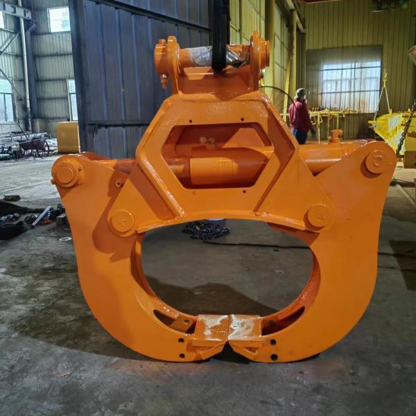 The excavator mechanical grab is driven by bucket cylinder, no additional hydraulic block and pipeline are needed.
