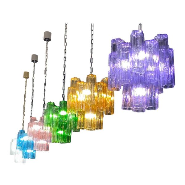 Italian In Murano Glass And Nickel-Plated Metal Structure On 4 Levels Vintage Chandelier