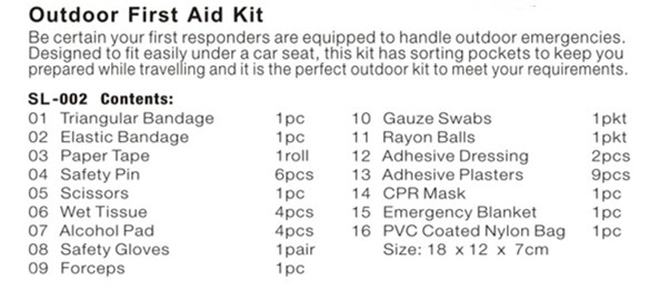 Product name | Outdoor first aid kit |