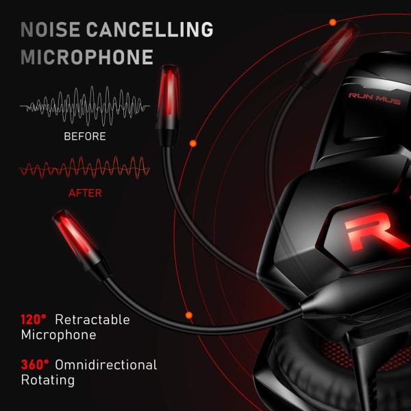 RUNMUS Gaming Headset Xbox One Headset PS4 Headset with 7.1 Surround Sound Noise Cancelling Mic LED Light