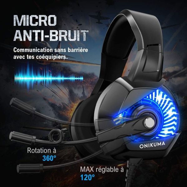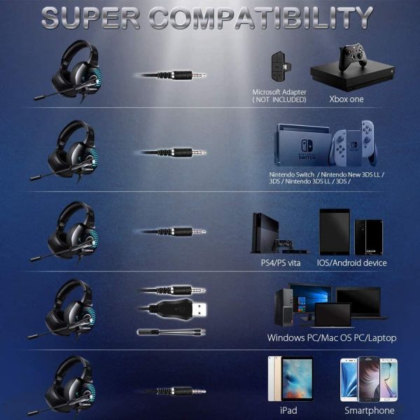 Onikuma K6 Gaming Headset for PS4 with Mic for PC Mac Bass Surround Sound Over Ear Headphone