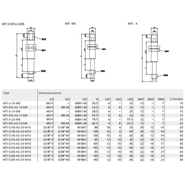 | MTI G1/8-AG-20-M16 | 0.11 | 2.2 | 4.5 | 1000 | 700 | 60 | 0...80 |