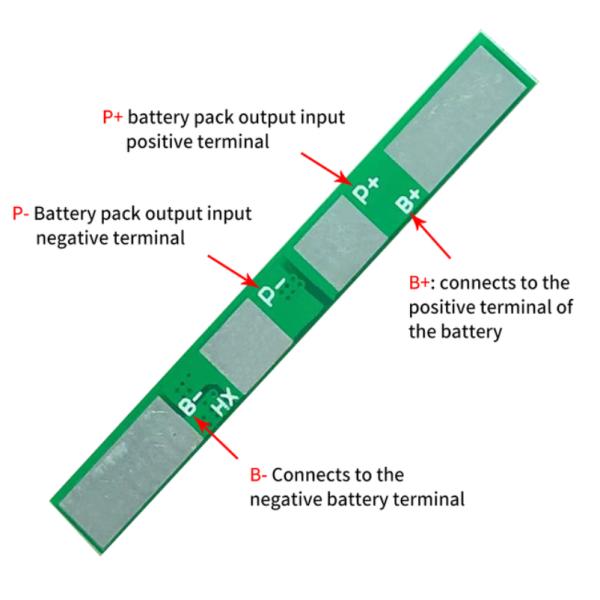 • Wiring instructions: B+ connects to the positive terminal of the battery B- Connects to the negative battery terminal P+ battery pack output input positive terminal P- Battery pack output input negative terminal